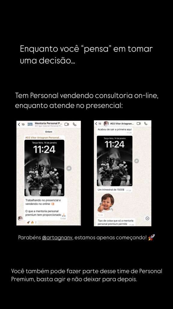 Mais de 10 anos de experiência em academias, mais de 750 mil reais em faturamento nos últimos 4 anos no presencial e digital